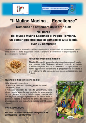 Per il ciclo il "Mulino Macina ... Eccellenze", domenica 14 settembre dalle ore 15.30, nel parco del Museo Mulino Sapignoli di Poggio Torriana, un pomeriggio dedicato ai bambini di tutte le età, over 30 compresi.